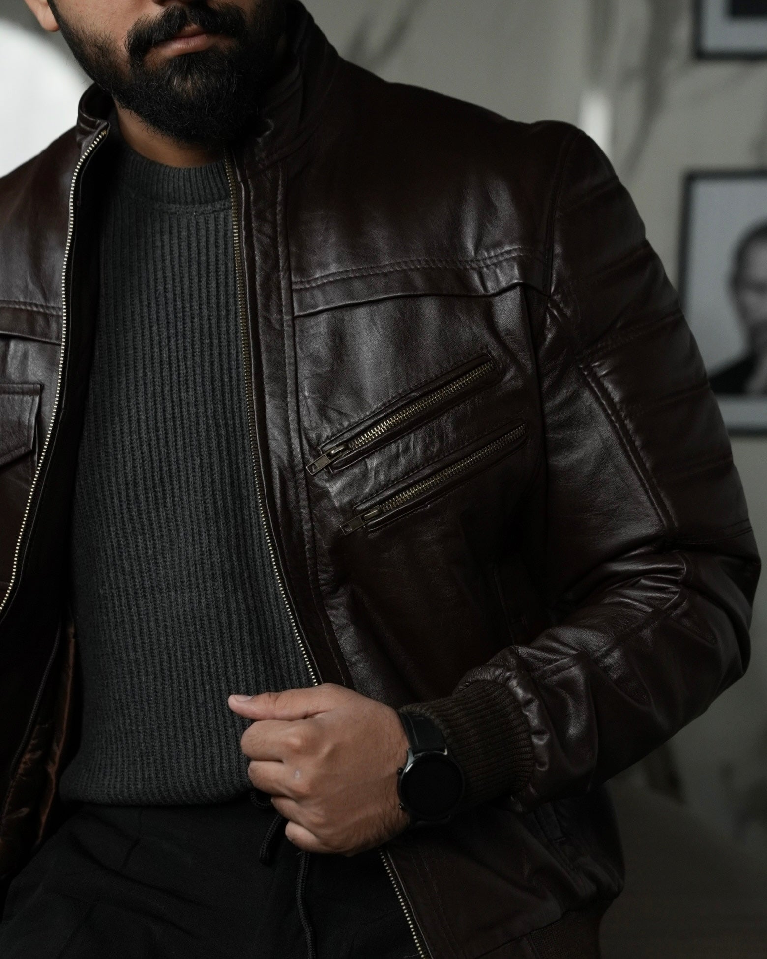COFFEE BROWN LEATHER JACKET