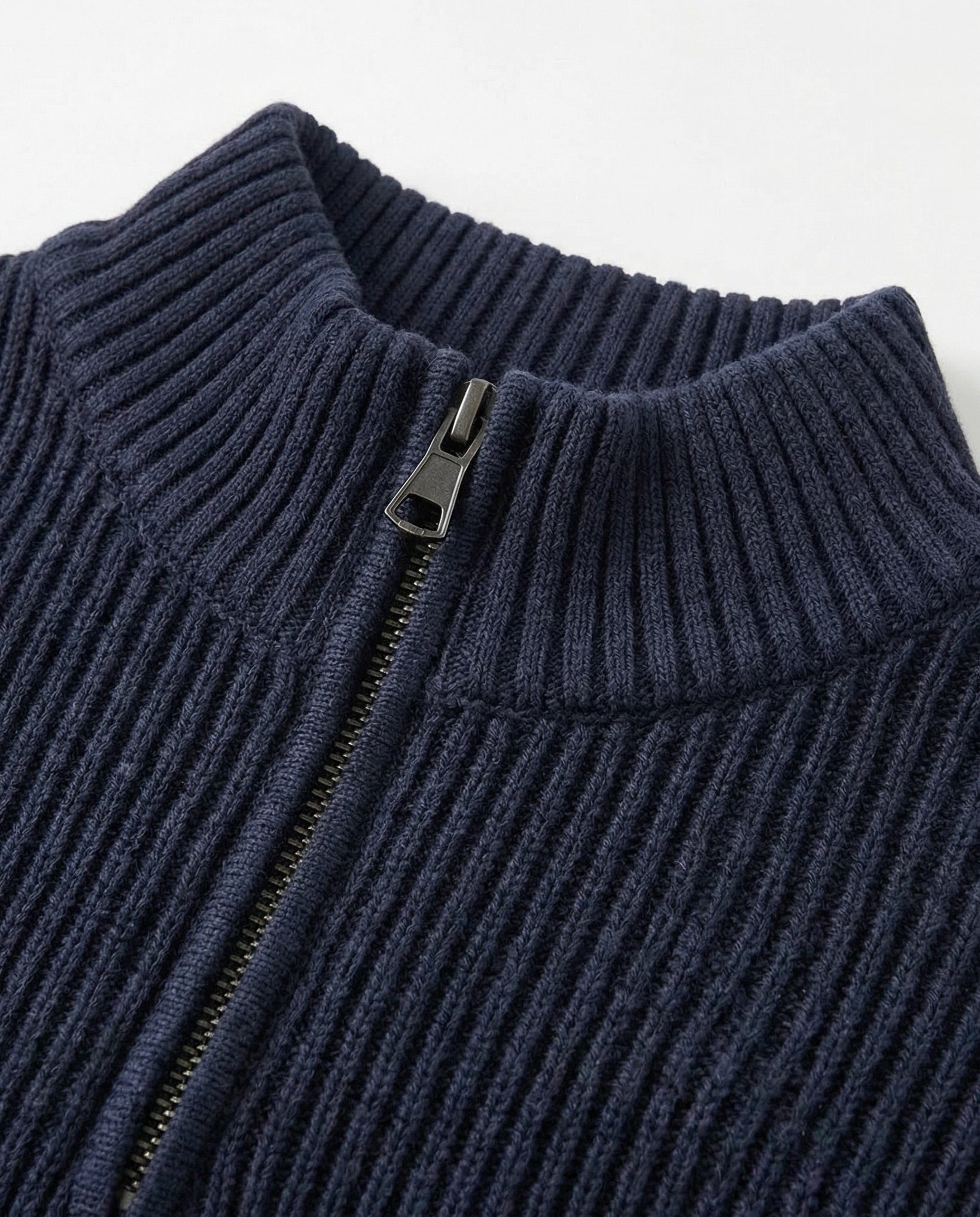 Crafted from premium cotton yarn and knitted from scratch, this royal blue zipper sweater blends comfort with modern functionality. The smooth knit offers a stable, refined drape, while the zipper adds versatility—wear it fully closed for a clean look or slightly open for a relaxed edge. A timeless essential built for durability, warmth, softness, and a polished everyday feel.